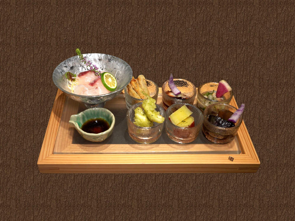 肉・魚・野菜・お造りを盛り合わせた姫路百花自慢の前菜の盛り合わせです。 モリンガ生葉0.5g・モリンガパウダー0.5g使用